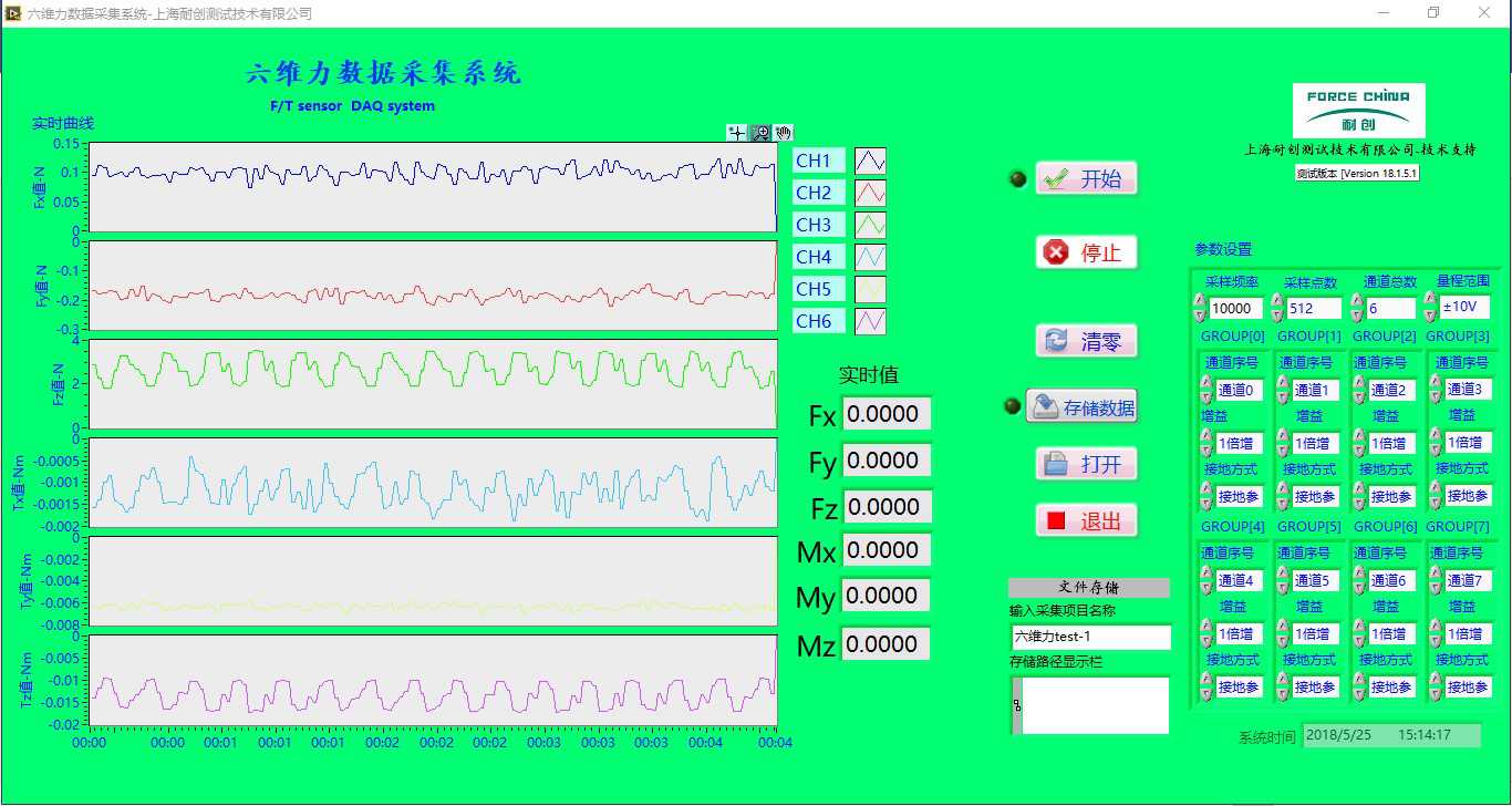 六維力數據采集系統(包含矩陣運算),顯示F/T