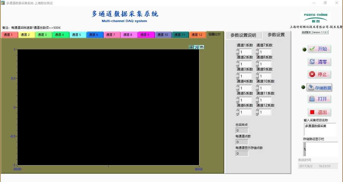 界面如下:包含單通道三通道(配三分力傳感器),六通道(配六維力傳感器)以及多通道數據采集軟件;