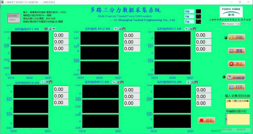 原始案例用于某隧道工程盾構試驗,采用6只三軸力傳感器,共18通道,實現數據的實時采集和存儲;