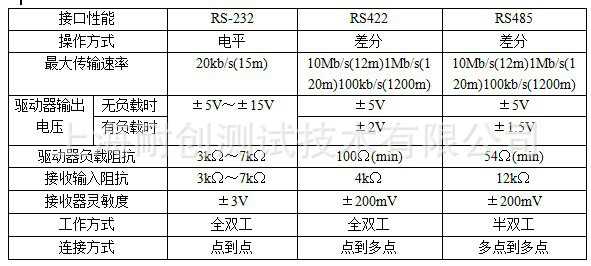 (3)RS232/422/485串行通信接口性能比較